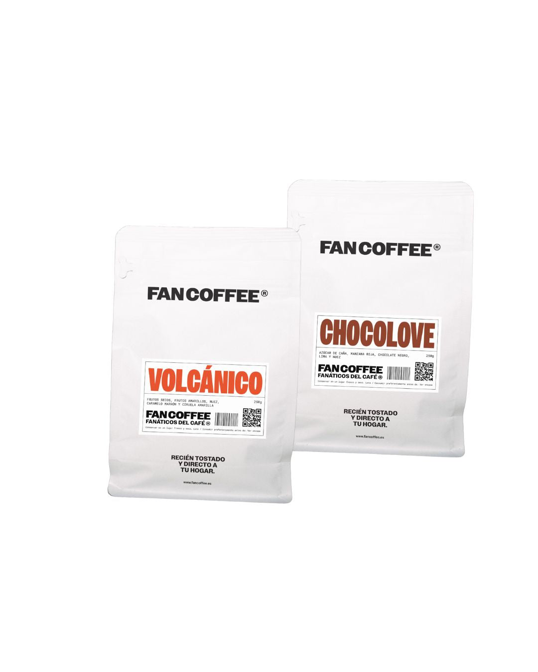 Cada paquete contiene 250 g de café, para un total de 500 g de experiencia Fancoffee.