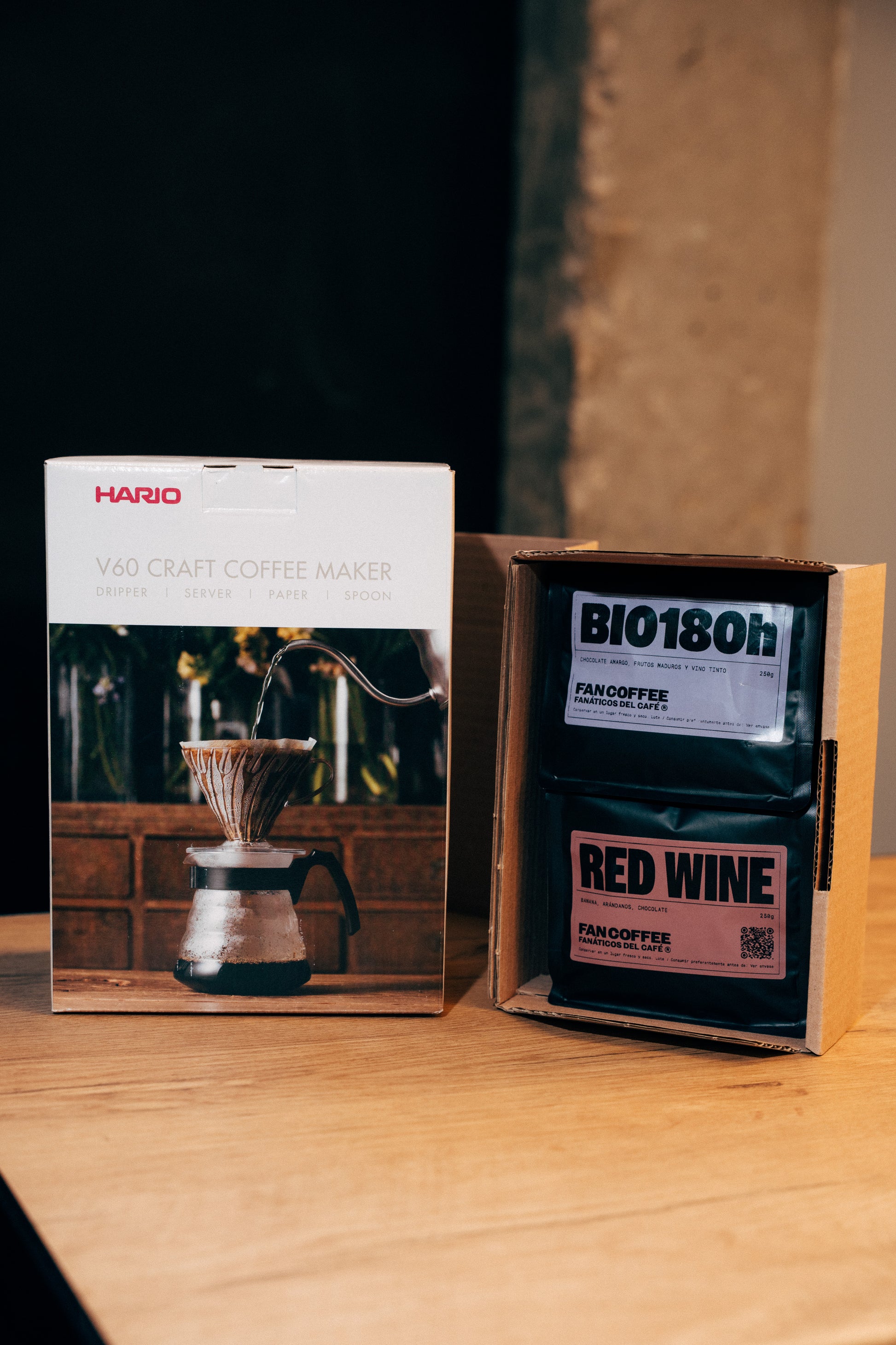 Descubre el placer del café filtrado con Hario V60, acompañado de dos cafés de especialidad de perfiles intensos y complejos: BIO 180H, un colombia con fermentación anaeróbica prolongada, y Redwine, nuestro clásico natural afrutado. Un pack diseñado para quienes buscan vivir la experiencia del café de filtro con calidad profesional desde casa.